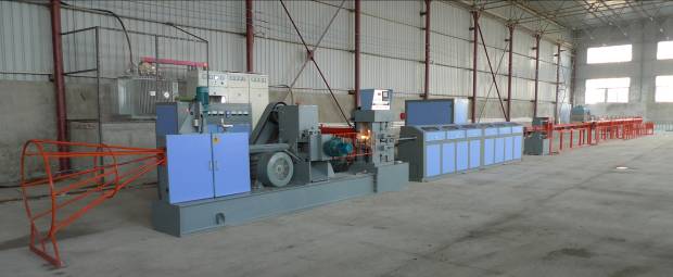The complete set of equipment is composed of wire laying frame, whole wire cage, descaling machine, rolling mill, main mill, straightening, heating, temperature measuring, shearing, slideway, two side material receiving, pneumatic automatic pushing and take-up machine. The unit is designed according to the continuous working system, and the whole set of equipment is controlled by PLC system.